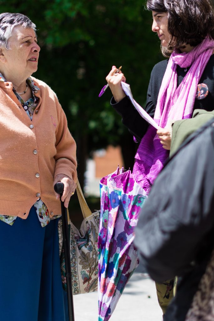 Urbanas confeccionaron el paseo por el barrio de la Milagrosa tras realizar un análisis exhaustivo de su diseño urbanístico y tras reunirse durante varios meses con asociaciones del barrio. Escuchar a los vecinos y vecinas es fundamental para ellas. Tanto, que durante el paseo no dudaron en detener las explicaciones y escuchar el relato de una vecina de la plaza de Santa Cecilia llamada Mari Paz (de 87 años) que nos contó cómo su marido consiguió que se plantaran muchos de los árboles del barrio en la época que estuvo trabajando de jardinero en el ayuntamiento.